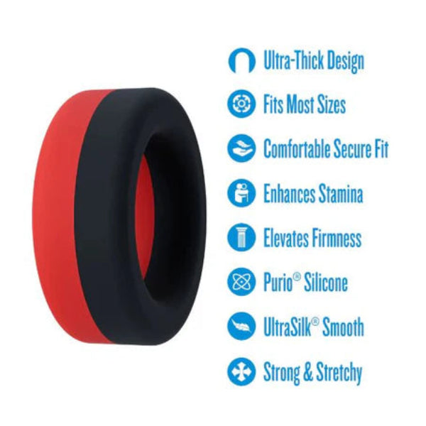 Body-safe, phthalate-free, and built to last, the Performance Plus Takeoff Silicone Cock Ring Red Black is your go-to choice for confident, controlled pleasure.