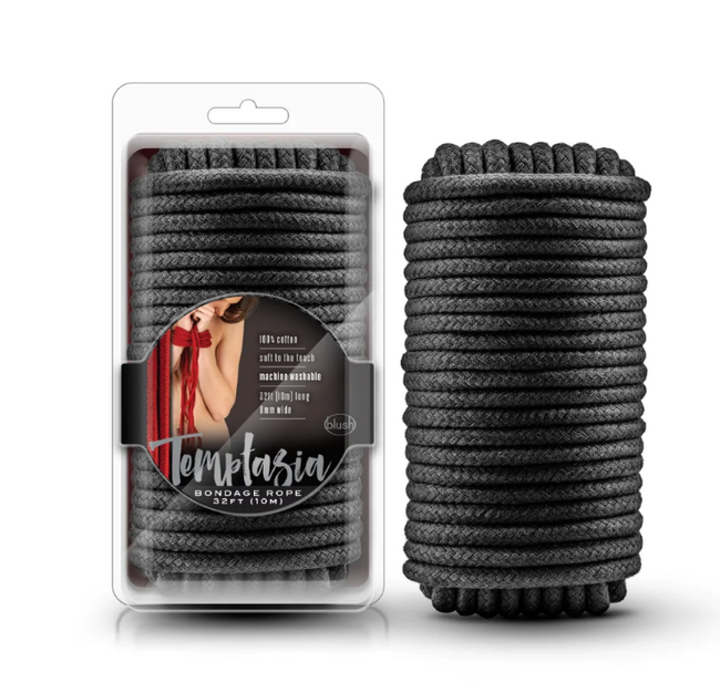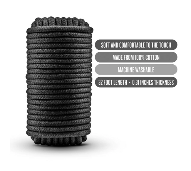 Wrap your lover in this soft to the touch, sensual rope. Cotton rope is traditionally associated with Japanese Shibari rope bondage and will hold your knots tightly. Naturally, the cotton rope will stretch a bit with use. Made from 100% Cotton, this bondage rope ensures quality and safety. To clean, slip your rope in a lingerie bag to keep it from getting tangled and machine wash with similar colours. Use cold water and air dry to avoid shrinking.