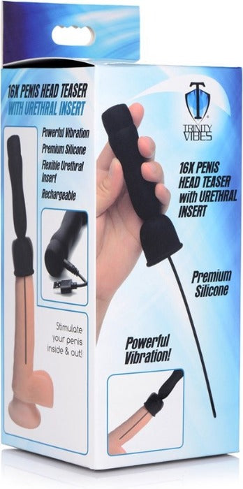 Stimulate your penis inside and out with this sound and head teaser toy combo. The powerful head teaser will vibrate on the head of your penis while the flexible silicone urethra insert stimulates your member from the inside. Made with premium, phthalate free, body safe silicone so you can play with peace of mind.