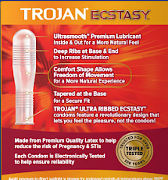 Trojan ultra ribbed ecstasy lubricated condoms feature a revolutionary design that lets you feel the pleasure, not the condom!