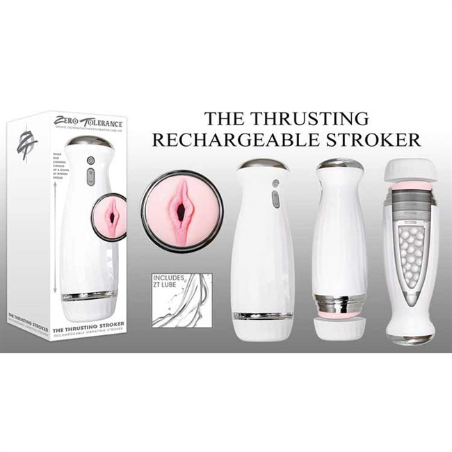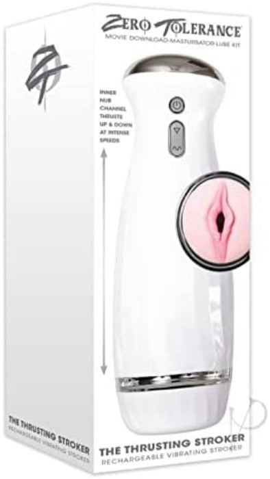 Zero Tolerance Toys is proud to unveil this powerful thrusting stroker that feels just like the real thing because its motor seems to have a mind of its own! The life-like vaginal entry gives way to erotic, soft and stretchy pleasure nubs that massage and tickle as you slip inside. Then choose from five different thrusting speeds with five different intensities each, that literally stroke up and down with the power of European motor technology. Kick start your fantasy with a free adult movie download and use plenty of lubricant for best results.