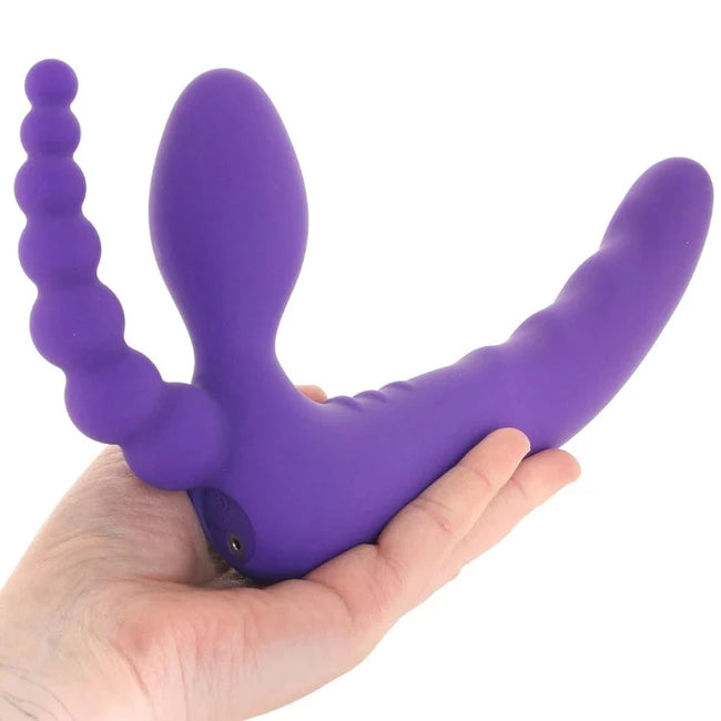 At the opposite end of the DP, the silky silicone probe is nice and long, offering lots of room for super-deep insertion; an upward tilt to the tip naturally targets a partner's g-spot, prostate and beyond. Control six speeds and fifteen patterns modes of vibration using a button at the base of your Pegasus, or with an included wireless remote. We should mention that despite the word 'strapless' in the name, this stupendous share-able vibe can definitely be used in a strap-on set-up or a harness - just position the shaft through the O-ring or front-piece of a compatible system before inserting the bulb.