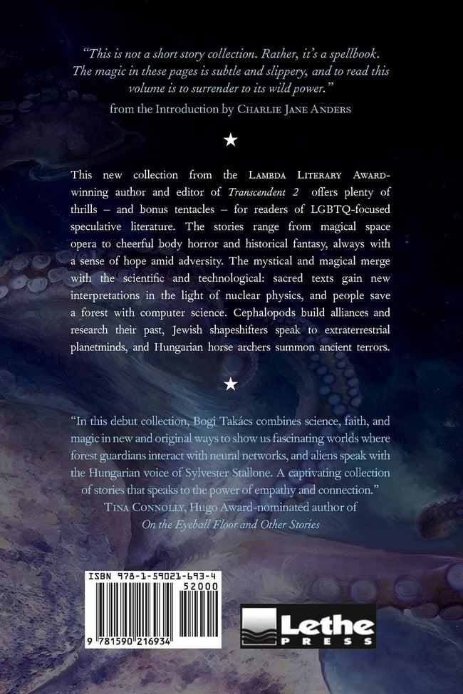 Lethe Press is excited to be releasing the debut short story collection by Bogi Takács. Takács may be known more for their recent editorial efforts, winning a Lambda Literary Award for Transcendent 2: The Year's Best Transgender Themed Speculative Fiction. But Takács is a talented storyteller and poet. An uplifted octopus finds a strange capsule in the water and wonders if one of the long-vanished humans might be found inside; a team of scientists perform some reverse-engineering on a space station and shapeshifting becomes political; and other tales of AI, hybrids, and the far future.