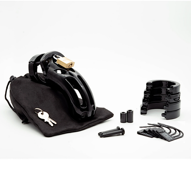 The CB-X The Curve Black is made of medical grade polycarbonate material. It is lightweight, hypoallergenic and durable. The cage portion is vented for hygiene and has a bottom opening allowing use at urinals. The different size rings and spacers included in each package allow you to customize your fit to your individual needs. The Curve restricts you from touching your penis for sexual pleasure and gives the Keyholder control over the sexual fulfillment of both partners. The dominant partner can ensure that the submissive partner cannot engage in sexual intercourse or masturbation when this is worn.