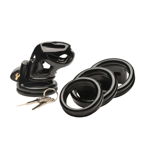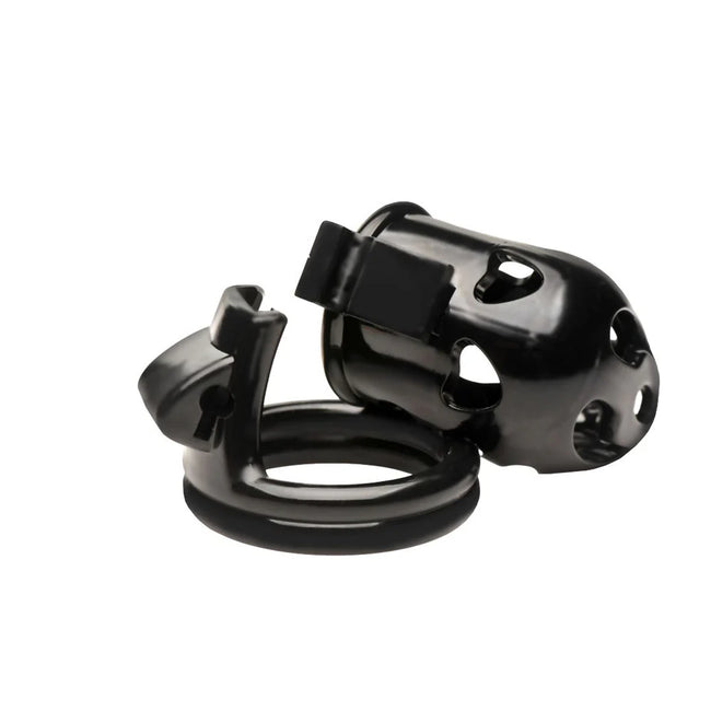 Plastic Chastity Cage: This plastic, black cage is a great starter cage for beginners to use safely.