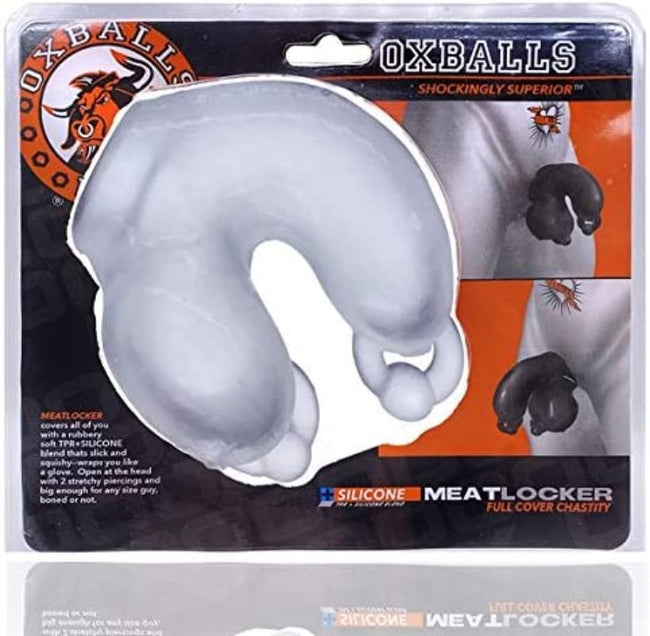 MEATLOCKER is Oxballs big hard-core chastity gear it wraps your dick and ball sack in super-stretchy rubbery PLUS+SILICONE it’s our first full-cover chastity device—and it’s easy to put on + comfortable for long-term wear. This thing stretches to fit and grips you like a glove. It’s got the feel of warm silicone the strength and stretch of TPR and the look of a double-pierced dick.