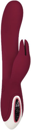Enjoy the satisfaction of girth without the awkward entry of a large tip by indulging in an inflatable silicone toy! The curved shaft reaches your G-spot effortlessly and then the tip inflates gently to five different levels according to your pleasure, stimulating that illusive erogenous zone with an extraordinary sensation. Use the quick release button anytime to instantly deflate. All motors work independently, with eight vibrating speeds and functions in the shaft and hard-working-bunny ears, sending you right over the edge! Clean this splash-proof toy with Evolved Toy Cleaner and warm water rinse.