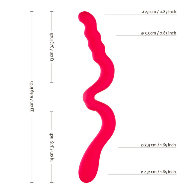 Specially designed for lesbian pairs the New Wave promises passionate moments for two. Both sides can simultaneously enjoy vaginal stimulation and with the rounded ridge in the middle also pleasure the clitoris. Connected to each other and at the same time exploring new terrain in the field of passion.