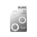 Strengthen your erection with this 3-ring collection that offers 3 levels of support – snug, tight & intense. Use one super-stretchy ring at a time or all 3 at once to enjoy a harder, girthier experience.