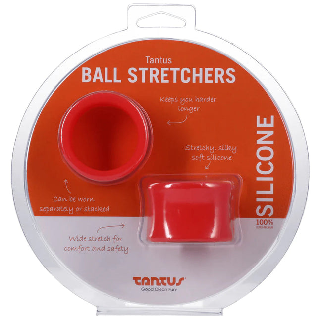 Introducing the Tantus Super Soft Red Ball Stretcher Kit, crafted from 100% Ultra-Premium Super Soft Silicone to prolong orgasms and enhance pleasure. Wrap around the scrotum for increased sensation during sex or masturbation, ensuring lasting enjoyment.