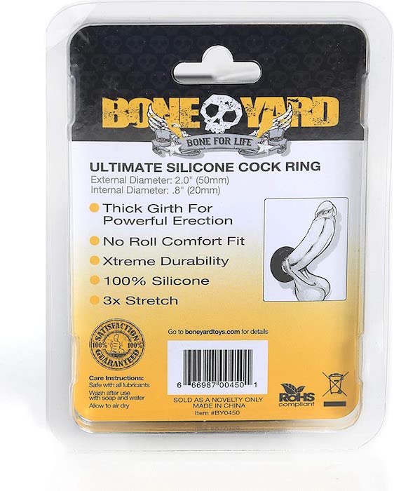 The Boneyard Ultimate Silicone Cock Ring is the must-have man toy for every man’s arsenal. The premium donut shaped ring is designed with superior materials and production thus increasing both comfort and lifespan. The powerful and iconic Boneyard-branded design has a sleek soft touch silicone finish and features a superior and durable stretch.