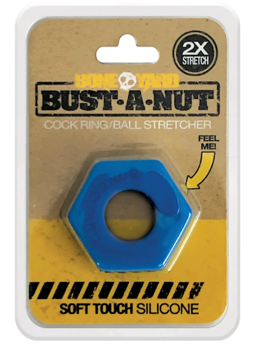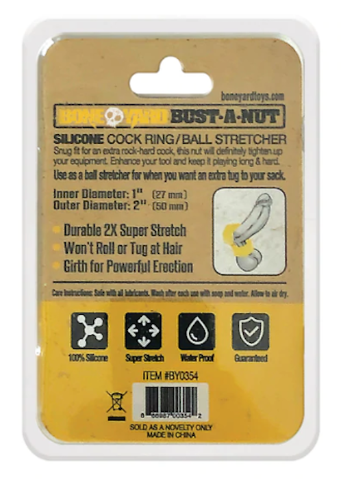 The Boneyard Bust a Nut cock/ball ring is all a man needs for hours of pure unadulterated fun. The ring is designed with superior materials and production thus increasing both comfort and lifespan. The powerful and iconic Boneyard-branded and engraved design has a sleek and soft touch silicone finish and features a superior and durable stretch. The Bust a Nut can be worn as a traditional cock ring or ball stretcher and can be used for nut stacking to give that perfect tug and slap on the ass while pounding away.