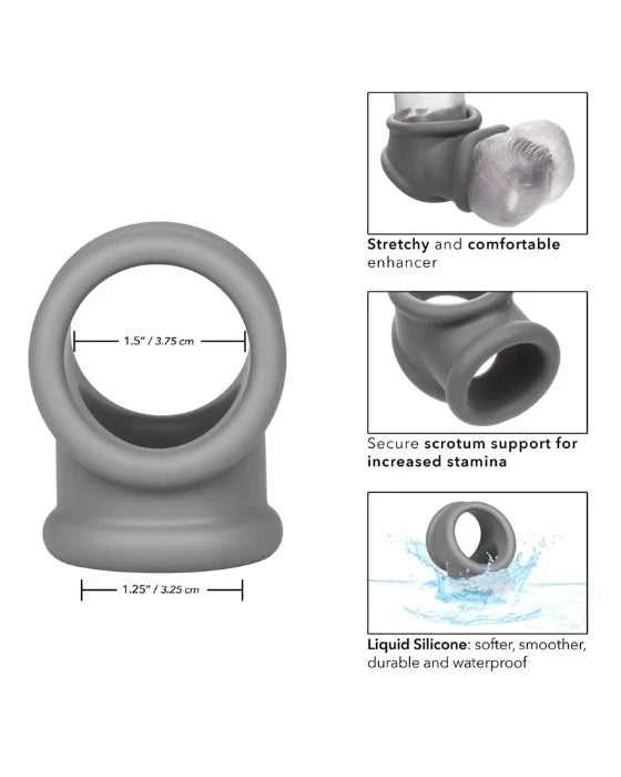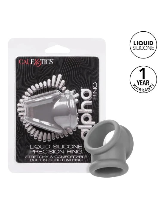 Get shaft and scrotum support and comfortable constriction for longer, stronger, harder erections. From bashful beginners to erotic experts, the Alpha Liquid Silicone Precision Ring will wrap you up tight in pleasure with the ultra plush, ultra stretchy enhancer ring. The playful ring is made from an ultra stretchy Liquid Silicone with a daring dual ring design. This stretchy, comfortable cock ring is made to increase stamina, improve sensitivity and deliver superior erection support. The durable scrotum support ring lets you indulge even further into increased stamina. Look for an explosive pleasure experience while the plush ring squeezes with every movement. The premium liquid silicone is soft, smooth, durable and waterproof.