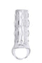 Finally, a plush little stroker sleeve can be employed whenever a little reinforcement is needed during masturbation or hand-jobs. The clear sleeve in miniature surrounds the penis in a clingy, excitingly ribbed inner texture as it strokes over the shaft and head.