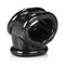 Once you're ready to truss up your playmate and you have the kit spread out, you'll first notice the sleek, firm cage in a clear, slick polycarbonate material. It's shaped to comfortably (but very securely) contain the penis, preventing him from touching, rubbing and otherwise interfering with the imposed chastity. The cage itself is 3 3/4 inches in length with an inner diameter of 1 1/2 inches, fitting most natural state penises- it's meant to fully surround the head and most of the shaft. Attaching to one of several available sleek, firm cock rings via several interchangeable parts, the cages fit can be fully customized thanks to five available ring sizes, 1 1/2 inches, 1 5/8 inches, 1 3/4 inches, 1 7/8 inches and 2 inches respectively. Along with the various ring sizes, the kit also offers 4 spacers and corresponding locking pins, these allow for adjustment of the space between the ring and cage. Not only do the various rings and spacers allow for a perfect initial fit, you and your partner will be able to move up (or down) as needed as he becomes more accustomed to the feel and functions of the device.