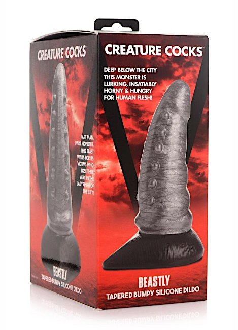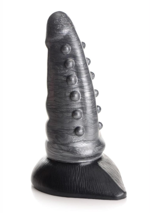 This Beastly Tapered dildo comes from the dark depths of the deep sea. With a tapered, tentacle like design, the nubs are lined along the base of the shaft for your pleasure. The wide base has a suction cup base for hands-free, easy riding. It can also be used with a strapon harness for pegging play. Made of phthalate-free, premium silicone it is body-safe and best used with water based lubricant.