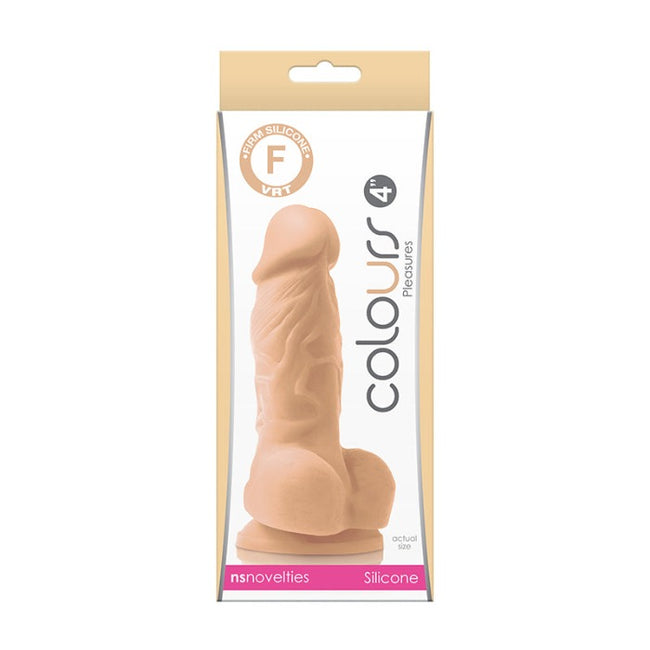 NS Novelties Colors Pleasures 4" Dildo White, realistic molded penis casted in superior grade silicone. Satin texture provides a more satisfying sensation.