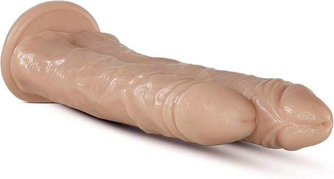 The doctor is in! The Dr. Skin Double Trouble will have you believe that two are better than one. This realistic suction cup dildo features two connected shafts, for a supremely filling experience. Double Trouble is sculpted to include all the veins, ridges, and skin texture of a real cocktimes two! Stick the sturdy suction cup to any smooth, flat surface and enjoy a hands-free ride. Made of non-porous PVC, Double Trouble is body safe and phthalate-free.