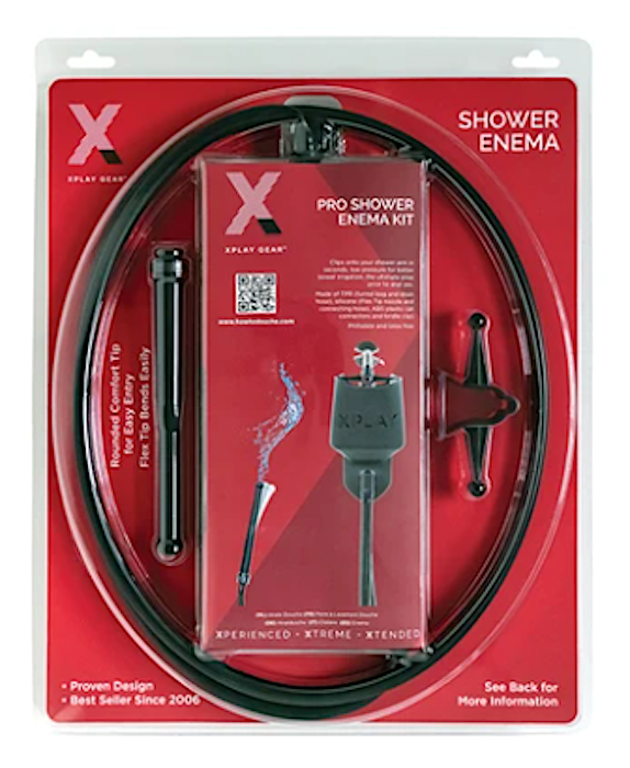 The system which snaps on to any standard shower hose pipe with the shower clip, includes a superior silicone funnel bag, a 6’ (183 cm) silicone douche hose, and a 5’ (152 cm) silicone drain hose.