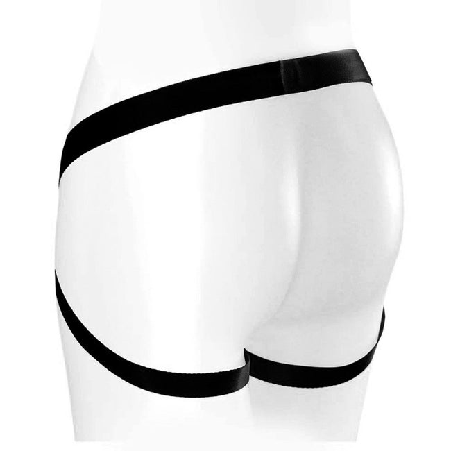 Note: Dildo not included, buy strap-on dildos here. Fully adjustable, Comfortable fit, Durable construction, 2 strong silicone support rings included, One size fits all dildos, Fits up to 52" waistline, Made from Premium soft and comfortable faux leather