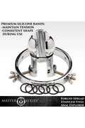 The Master Series Forced Spread Anal Explorer features a tapered tip for easy insertion and expands from 1.6 to 3.8 inches in diameter.