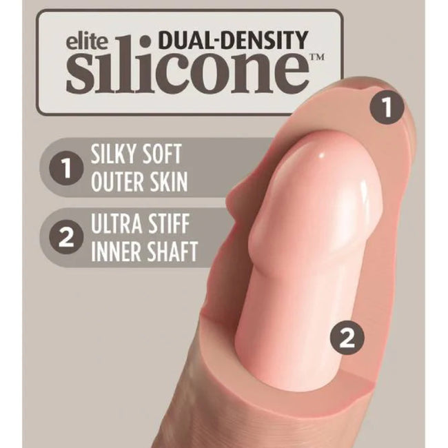 The King Cock Elite® silicone dildo is made from high-quality dual-density Elite Silicone™. The lifelike silicone outer skin is smooth to the touch, while the hard silicone inner shaft is stiff and erect like an actual penis, making your pleasure experience as true to real life as possible!