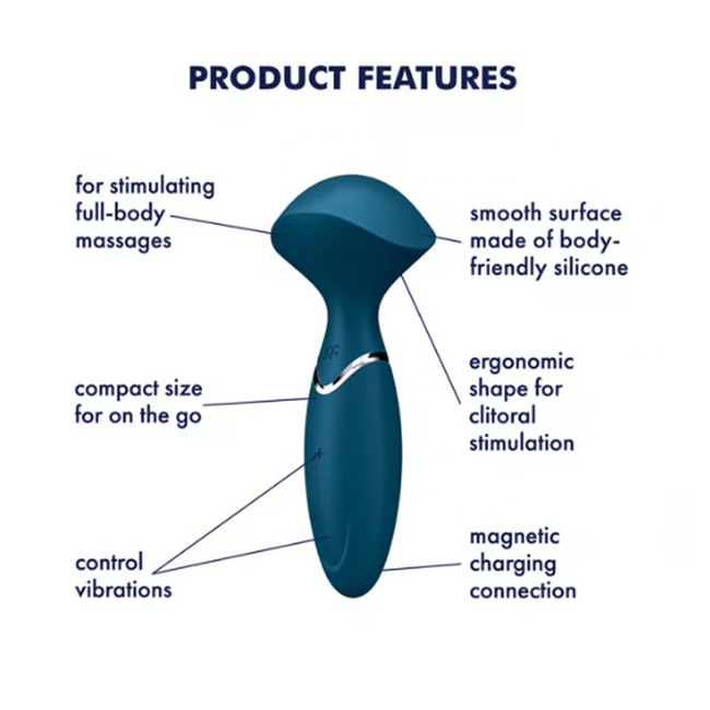 With the Satisfyer Mini Wand-er made of silicone, you can still have sensual full-body massages when you're on the go or travelling. The compact design massager is suitable for both massage and clitoral stimulation. Perfect for a full body massage and thanks to its compact size, it’s the perfect travel companion.