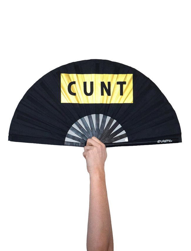Cunt Pride Hand Fan - Wooden, Blk/Gold