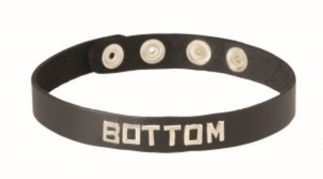 Various Wordband Collar by Spartacus: Let everyone know where you stand when it comes to your sexual desires. These thin oiltan leather collars have a variety of words featured front and center.