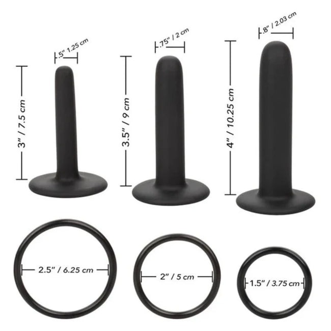 The Boundless™ Silicone Pegging Kit is made to thrust you into the thrilling world of endlessly satisfying pleasure. This anal pleasure set is made to play with 3 graduated sizes of pegging probes, a universal harness, and 3 graduated sizes of support rings. The sensual silicone probes are made to escalate in pleasure with 3 graduated sizes to ease you into the thrills of backdoor passions. Easily change the probe size with the set of 3 interchangeable harness rings to accommodate any dong, dildo, or Boundless™ harness toy.