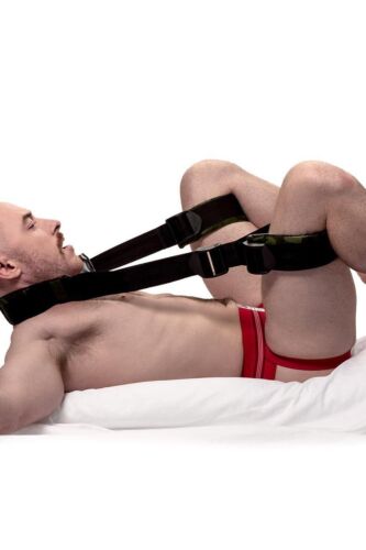 Extra padded on one side and rugged camo canvas on the other, the Sling cradles the neck of a trussed-up playmate while two matching padded cuffs circle the thighs, holding the legs up and out. Once they're all strapped in, the resulting tension supports various parts of the body during sex and foreplay, reducing leg strain and increasing the potential for super-deep penetration. The cuff connector straps are adjustable on each side, so you'll be able to customize the Sling to your sexual whims easily and quickly.