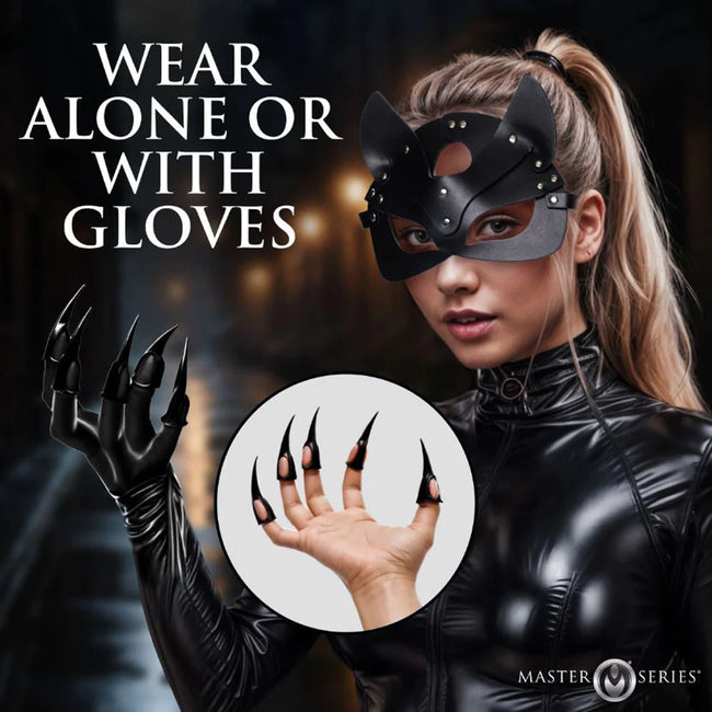 Unleash your inner creature with Talons 10 Piece Claws! Designed to fit every finger, this set of 10 rings in 5 different sizes is perfect for creative and sensory exploration. The tapered, pointed tips are ideal for stimulating touch play, while the flexible design allows you to wear them on bare skin or over gloves. Crafted from phthalate-free plastic, these claws are both safe and durable. Turn ordinary moments into extraordinary adventures with this playful set of sensation rings.