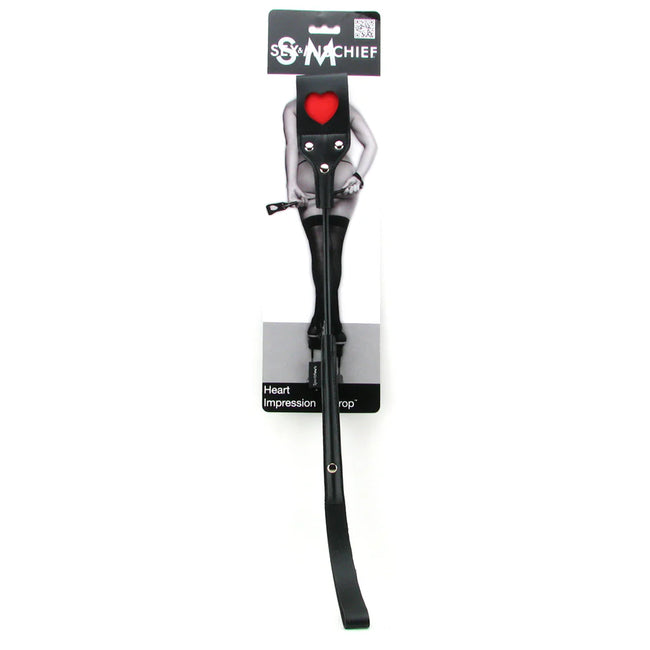 Firm, easily maneuverable and perfectly weighted, the Heart Impression crop is a fun little addition to any playful bondage collection. Delivering light teasing smacks as well as firmer, stinging slaps, the perfect heart cutout may just leave its mark. The core of the Crop is a firm, hardy ABS plastic with just enough flexibility, it's covered at tip and base with sexy leather-look vinyl fabric. Nickel free.