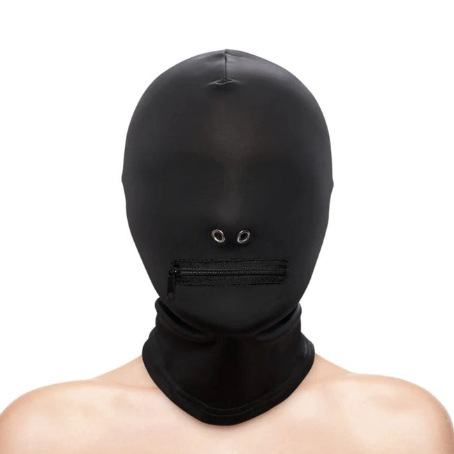 Take control of your submissive lover with Hustler Taboo’s Zippered Mouth Hood. Made of soft and snug nylon and nickel-free metal, this provocative hood covers the eyes and provides a mouth opening that can zipped shut during play . One size fits most.