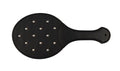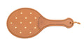 This robust paddle is made with heavy harness leather, available in different colours. Studded on both sides. The handle is a four layers to nicely fill your hand. At 6 1/2" wide by 14" long, you can make a butt rosy in no time.