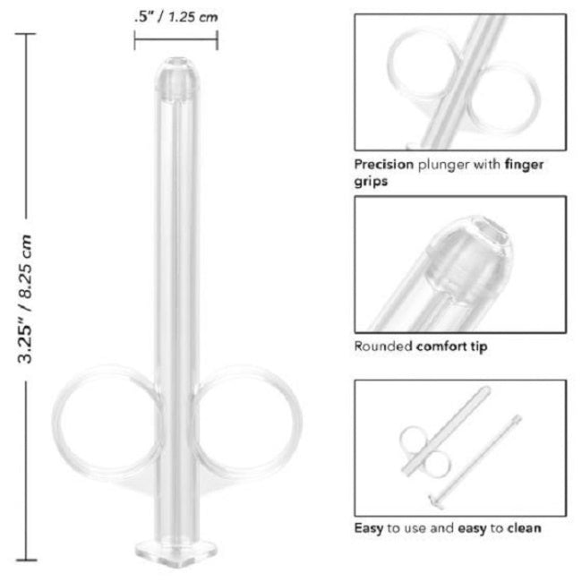 This pair of reusable, refillable dispensing tubes let you apply the lubricant of your choice internally or externally with pinpoint precision. The Lube Tube Applicator has a slim shaft, a rounded tip, and a seamless body for comfortable insertion. Each tube has 2 stabilizing finger loops on either side and an easy-to-use plunger so you can control the lubricant flow perfectly.