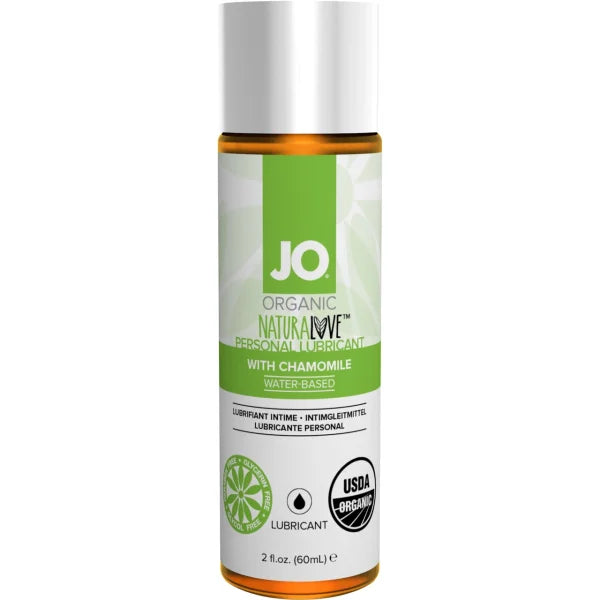 JO Naturalove Organic Chamomile Lubricant, USDA certified NATURALOVE personal lubricant is designed to enhance the pleasures of intimacy. The pure chamomile preservative system provides the beautiful amber coloring and the organic agave offers a smooth, long lasting glide.