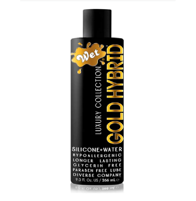 Wet Gold Hybrid is a Silicone/Water Based Blended Luxury Premium Personal Lubricant that is Long Lasting, Condom-Safe, Vegan friendly, is Ph-Balanced, Hypoallergenic, Glycerin & Paraben Free.