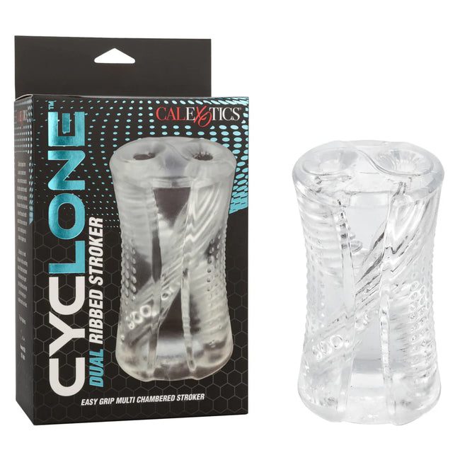 Experience the intense pleasure of the Cyclone™ Dual Ribbed Stroker. This innovative masturbator is designed to provide you with mind-blowing sensations and an incredible visual experience. The easy-grip design of the stroker allows for a secure and comfortable hold, giving you full control over your pleasure. Its dual ribbed chamber design adds extra stimulation, creating a whirlwind of pleasure with every stroke. The transparent design lets you see all the action, adding an exciting visual element to your experience.