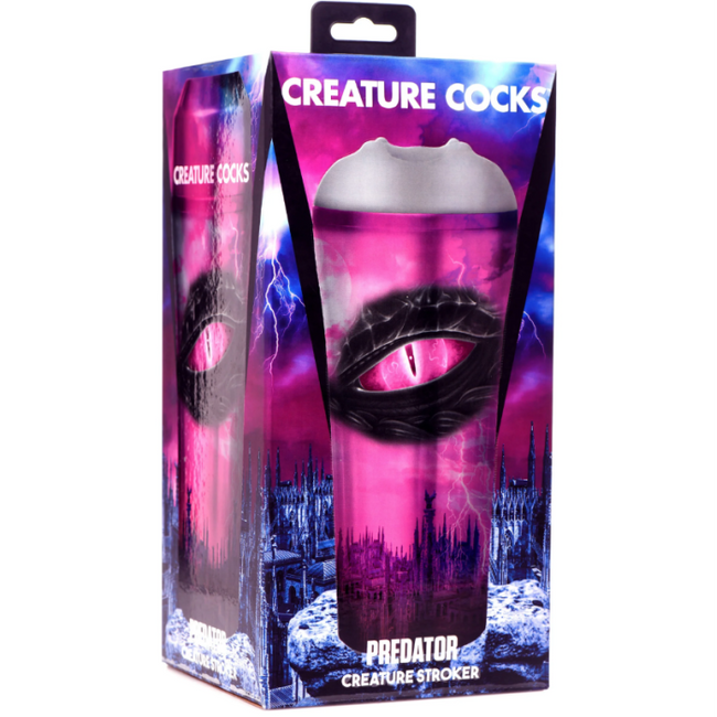 Are you excited by danger? This Predator stroker is soft gray with textured circular dimples on either side of his fierce slit! Inside the masturbator are rows of ribs, grooves and textured nubs that will drive you crazy as you dive inside and enjoy pumping into the tight hole. Control pressure and suction using the silicone plug located at the base of the housing. Keep it in and each pump will add a little pressure and suction for a tighter squeeze! Remove the cap to release it.