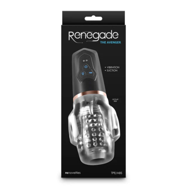 Experience unparalleled simulated oral pleasure and satisfaction with the Renegade Avenger, a cutting-edge male electronic masturbator. The Avenger boasts six suction and seven vibration settings for exquisite stimulation and sensations.