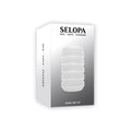 The SELOPA Ring Me Up Stroker is soft and squishy with deep outer grooves for a secure grip. It features a circular inner channel with two openings that provide teasing and squeezing sensations. It measures 3.7” in height, 1.96” in depth and width, with a 3.4” insertable length. The large opening is 0.74” in diameter, and the smaller one is 0.30”. Made from phthalate- and latex-free TPE, it includes a vibrating C-ring and is waterproof for submersible use.