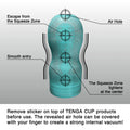 The Tenga Rolling Head Cup features a flexible casing that allows the head to move freely, stimulating your tip with specially designed internal textures for continuous, intense squeezing. Its 360° flexible design lets you enjoy sensations from every angle. A special valve creates strong suction when you cover the air hole during use. The Smooth Pad mechanism seals the cup and applies lubricant automatically, so no lotion is needed and there’s no leakage. To use, remove the bottom wrap and the air hole sticker on top, take off the cap to access the pre-lubricated opening, then insert and twist the cup for full stimulation. Control suction by covering or uncovering the air hole. Make sure the air hole is open for easy insertion.