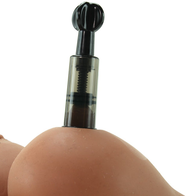 Large and exceedingly sturdy, the Suckers feature a wide circular opening capable of fully surrounding the nipples, clitoris and more. Simply press the Sucker against the skin to create a seal, and twist the black cap clockwise to activate suction- an internal plunger will rise, drawing air (and flesh) up through the cylinder as it goes. Twist the cap in the opposite direction to release internal pressure.