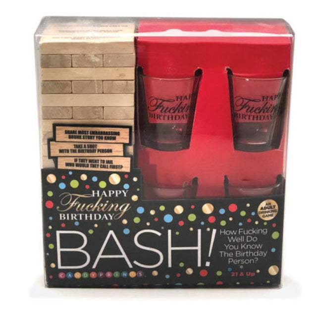 Happy Fucking Birthday Bash Drinking Game For ADULTS by Little Genie. Happy Fucking Birthday Bash is an adult drinking, stacking and ultimately tumbling tower game for two or more players 21 and over. Celebrate the guest of honor by reading aloud the questions as you try to stack the tower without tumbling over! This game will reveal how well you know the birthday person and if you don’t know the answer TAKE A SHOT! Included in the box is 4 Happy Fucking Birthday Shot Glasses, 60 Stacking blocks with questions. This line of hilarious party products has been regarded by media outlets worldwide as the Official line of adult themed party products of 2022. Turn your next ordinary party into a fucking high class function with any of our fine party products. Complete this look with coordinating Happy Fucking Birthday napkins, straws, candles, games and more!