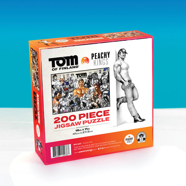 Puzzled about how to find the perfect man? Look no further than the first ever Tom of Finland Jigsaw Puzzle!! 200 pieces of non-stop fun — with over 30 Tom of Finland illustrations, including: leathermen, muscle studs, hot cops, sexy sailors, leather daddies, bikers, and many more! The finished puzzle is approx 11inx16in. Perfect for holiday gifts and year round fun! Pick up yours today!