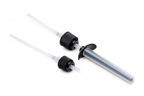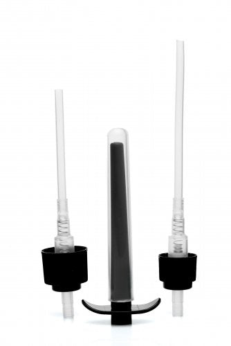 Turn just about any lubricant bottle into a lube injector! This set comes with two differently sized adaptors for small and large bottles of lubricant. Attach the nozzle for the ability to pump lubricant directly from the bottle into your orifice. The no-backflow design ensures a hygienic experience and easy clean-up. This lubrication accessory is great for travel or everyday use at home! The sanitary storage cap keeps hygiene a priority even when not in use.