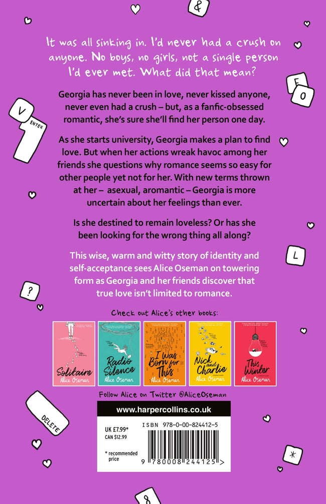 As she starts university, Georgia, makes a plan to find love. But when her actions wreak havoc among her friends she questions why romance seems so easy for other people yet not for her. With new terms thrown at her—asexual, aromantic—Georgia is more uncertain about her feelings than ever.
