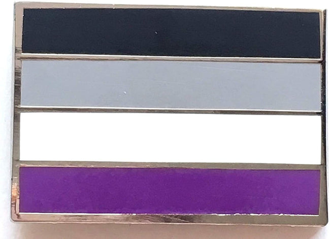 The asexual pride flag consists of four horizontal stripes: black, grey, white, and purple from top to bottom. The black stripe represents asexuality, the grey stripe representing the grey-area between sexual and asexual, the white stripe sexuality, and the purple stripe community.