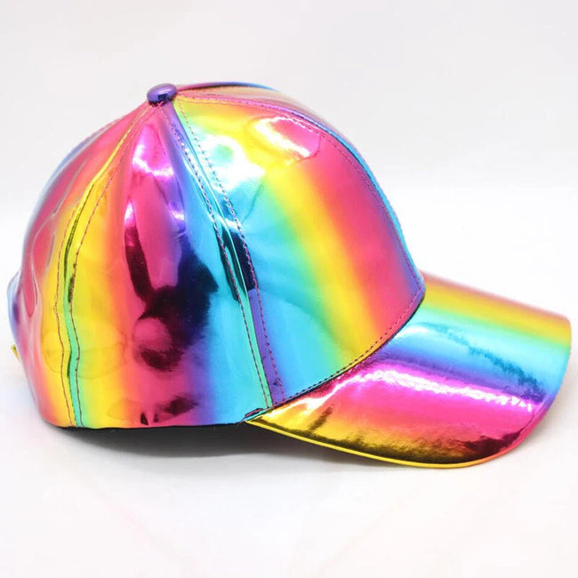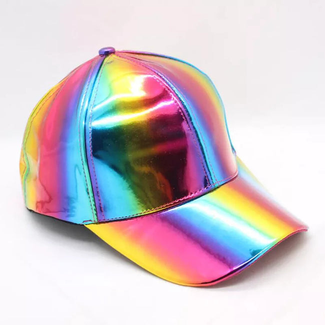 Elevate your style effortlessly with the Rainbow Metallic Iridescent Hat.